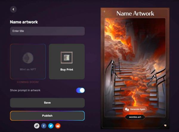 用户只需要在《WomboDream》中输入一个关键词和一段描述并且选择一个艺术风格,就可以获得属于自己的神作。