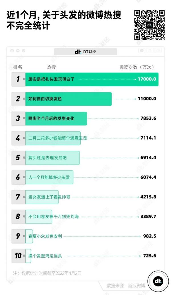 人们对头发的执着,也体现在各大社交平台的热度上。在微博,发型相关的热门话题频频登上热搜,获得了以亿计数的阅读量。