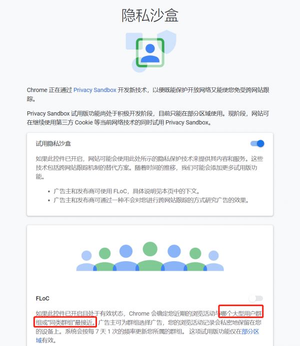 谷歌一直强调,浏览器定期在用户的手机或电脑上,重新计算同类群组,但是不会与任何第三人分享用户的浏览记录。
