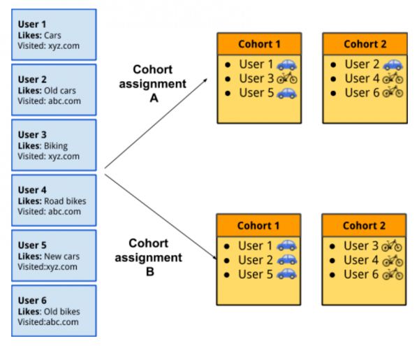 谷歌在FLoC通知中提示,Chrome浏览器将一个用户的浏览行为,与其设立的“大型群组”或“同类群组”(Cohort)进行匹配,然后相同轨迹和兴趣的人,分到相同和类似的群组里。