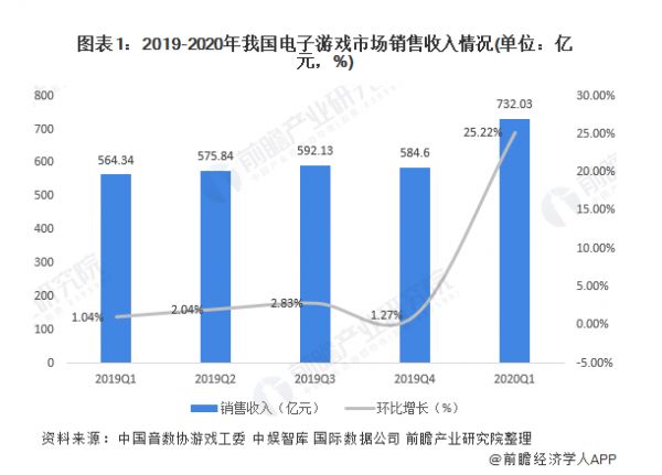 新冠肺炎疫情的爆发导致作为“第九艺术”的游戏成为了居家隔离状态下多数人的精神慰藉。2020年第一季度,我国电子游戏市场迎来一波暴涨,销售额高达732.03亿元,较2019年第四季度环比增长25.22%。