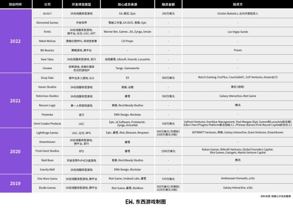 这些离职创业员工,主要来自暴雪、EA、育碧、Riot等一线大厂,且成立后的公司获得a16z等知名风投公司融资,也有被腾讯、索尼看好甚至直接收购。