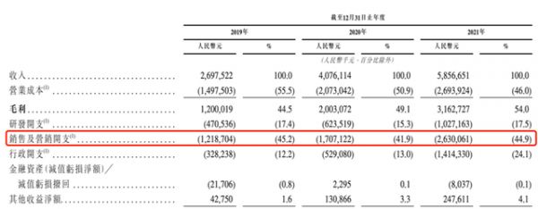实际上,喜马拉雅亏损的原因,在招股书上也能明确体现。其中,最重要的原因就是喜马拉雅销售及营销开支占比过大。根据招股书显示,2019年至2021年,喜马拉雅销售及营销开支分别为12.18亿元、17.07亿元和26.3亿元,占营收比例分别为45.2%、41.9%和44.9%。