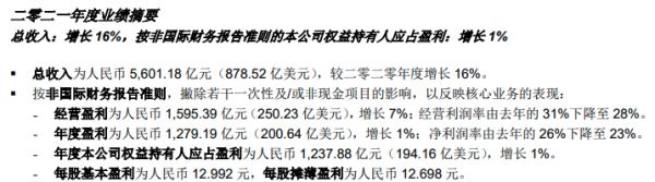 根据 3 月 23 日腾讯发布的 2021 年第四季度和全年财报显示,2021 年第四季度腾讯净利润(按照非国际财务报告准则)248.8 亿元,同比下降 25%。2021 年全年,腾讯实现营收 5601.18 亿元,同比增长 16%,净利润(按照非国际财务报告准则)1237.88 亿元,同比增长 1%。