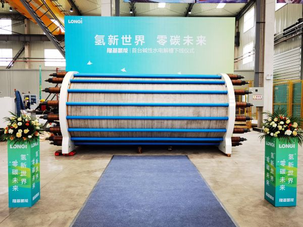 隆基下线首台碱性水电解槽。