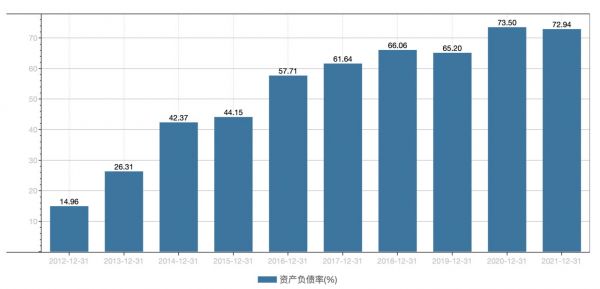然而,长期为开拓信息数据领域的债务付出已经让依米康压力倍增。钛媒体APP统计,2012年至今,依米康资产负债率已经由2012年的14.96%攀升至2021年的72.94%。