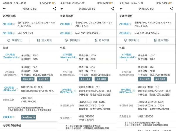 因为荣耀前两代Play T系列产品都是4G手机,所以我们选择价位相仿的荣耀Play系列5G入门手机作为对比。根据资料显示,荣耀Play 4采用了联发科天玑800 5G处理器,而荣耀Play 5则采用了联发科天玑800U 5G处理器。性能方面,因为阉割了一个GPU核心,荣耀Play6T Pro搭载的天玑810居然是三款处理器中性能最差的。