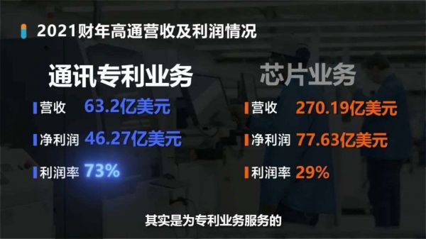 高通的业务可以简单分为两大板块一是收取通讯专利费,二才是卖芯片。其中通讯专利业务才是高通利润率更高、赚钱更快的生意,也是他们集团内部更受重视的业务。从某种意义上说,高通的芯片业务其实是为专利业务服务的。