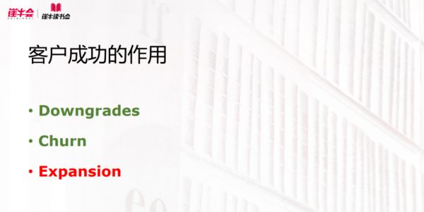 客户成功的作用主要体现在三点:1. 阻止降级,就是阻止流失率往下降级;2. 防止流失,这两个相当于桶的短板。这个短板必须有客户成功来堵住;3. 扩充膨胀(二次销售)。
