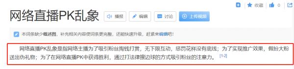 在百度,关于网络直播PK乱象,已经有了官网词条。