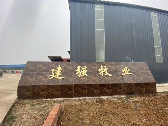 正门右侧,四个鎏金行体大字贴在石碑上,“建强牧业”正是羊场的大名。进入厂区,迎面而来的是左右纵向排布的巨大蓝顶厂房,约有两层小楼高,再往里走,又有几座大型铁制厂房,里面垒着比那蓝顶厂房还要高的草料。