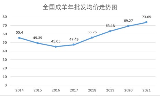 根据农业部的数据,14年成品羊的批发均价是55.40元,2015年就降到了49.39元,2016年更是降到了45.05元。