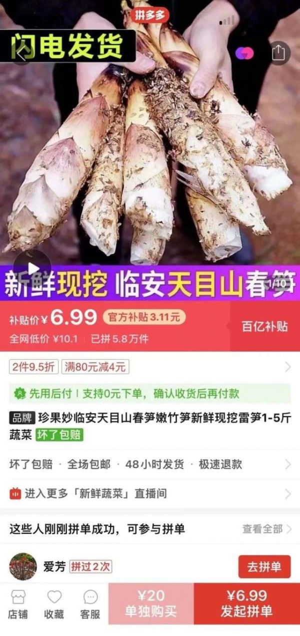 事实上,「百亿补贴」自从2019年6月推出以来,类目从苹果戴森代表的3C电器,逐渐扩大至美妆、服装、农产品,范围越来越广,补贴额度也越来越少,比如客单价本来就低的农产品,单款的补贴价,经常也只是一两块钱。