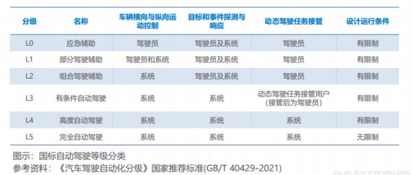 目前,国内将自动驾驶分为6个等级,其中L0级为应急辅助,L5则为完全自动驾驶。