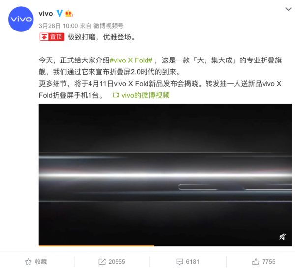 比如,2022年3月28日,vivo官方就发布消息称,自家的首款折叠屏旗舰产品,vivoX Fold将于4月11日正式发布。