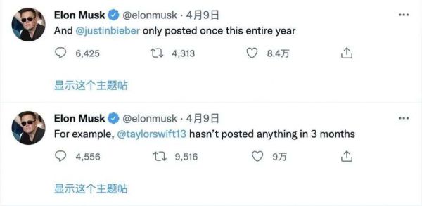 比如,歌手Taylor Swift 的账号「@taylorswft13」已经3个月没有发布任何内容了,而 Justin Bieber 的账号「@justinbieber」今年只发了一次帖子。