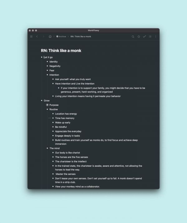 Workflowy 的界面和作者的笔记|图片来自 Medium