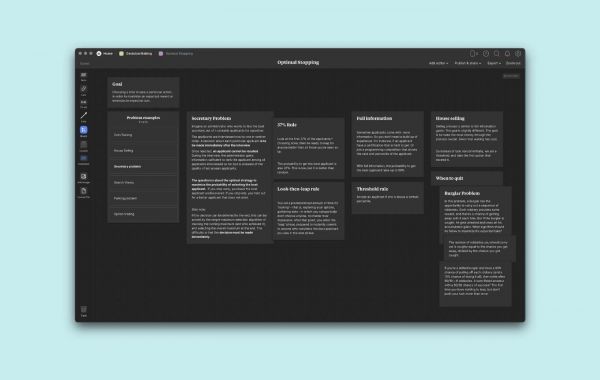 当我需要深入了解某个主题或者事物时,我会选择使用 Milanote。这是一个看板应用程序,可以让你粘贴不同的卡片和图像。我用它来整理笔记并且记录更加深入的想法。