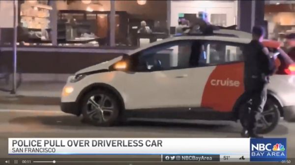 据NBC BAY AREA报道,起因是该车辆在行驶过程中没有开前灯,而当警察试图与司机交谈时,突然发现车内竟然没有人。随后警察上前试图打开车门,无果后返回了警车。突然,该车辆自行启动并驶离现场,而警车随后又将其逼停并再次来到无人驾驶车辆周围查看情况。