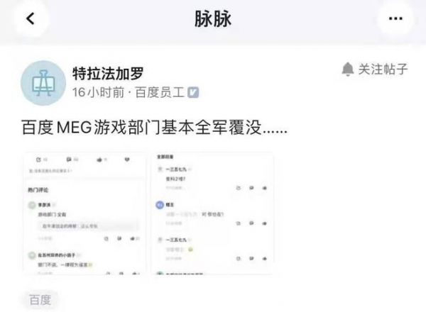 百度游戏也在这份消失名单之中。去年12月22日,有百度员工在职场社交平台爆料,隶属于百度移动生态事业群MEG下面的百度游戏部门整体被裁撤。据新浪科技报道,此次裁员是在12月22日上午11点的全员大会上宣布的,游戏部门300多人几乎全部被裁。字母榜就此向百度官方求证,截至发稿,暂未收到对方回复。