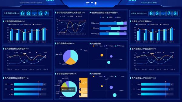 图片源自方云智能提供的管理者视角战略经营大屏,实时展示团队绩效完成情况和资源投入情况