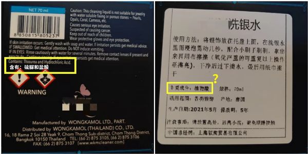 含有硫脲和盐酸的一款洗银水,但是另贴的中文标签有扯犊子儿的嫌疑丨作者供图