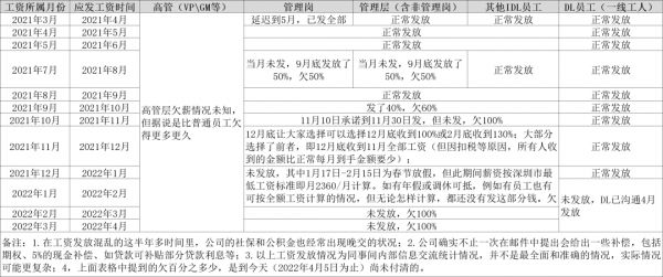此前,柔宇科技前述员工李艳红曾对每经记者表示,2021年3月,当时VP(Vice President,副总裁,记者注)级别高管已经出现被拖欠薪资的情况。VP以下的管理岗当年3月拖欠的薪酬到5月份发放,7月的工资到9月收到50%;8月的工资9月正常发放,9月工资10月只收到40%。此后,薪酬发放开始越来越混乱。