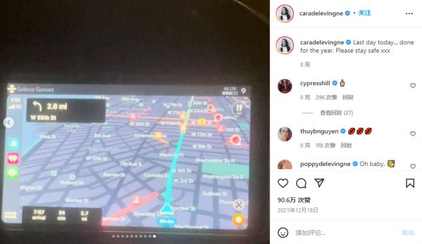 (Cara Delevingne的Ins,与那张汽车地图一起发布)