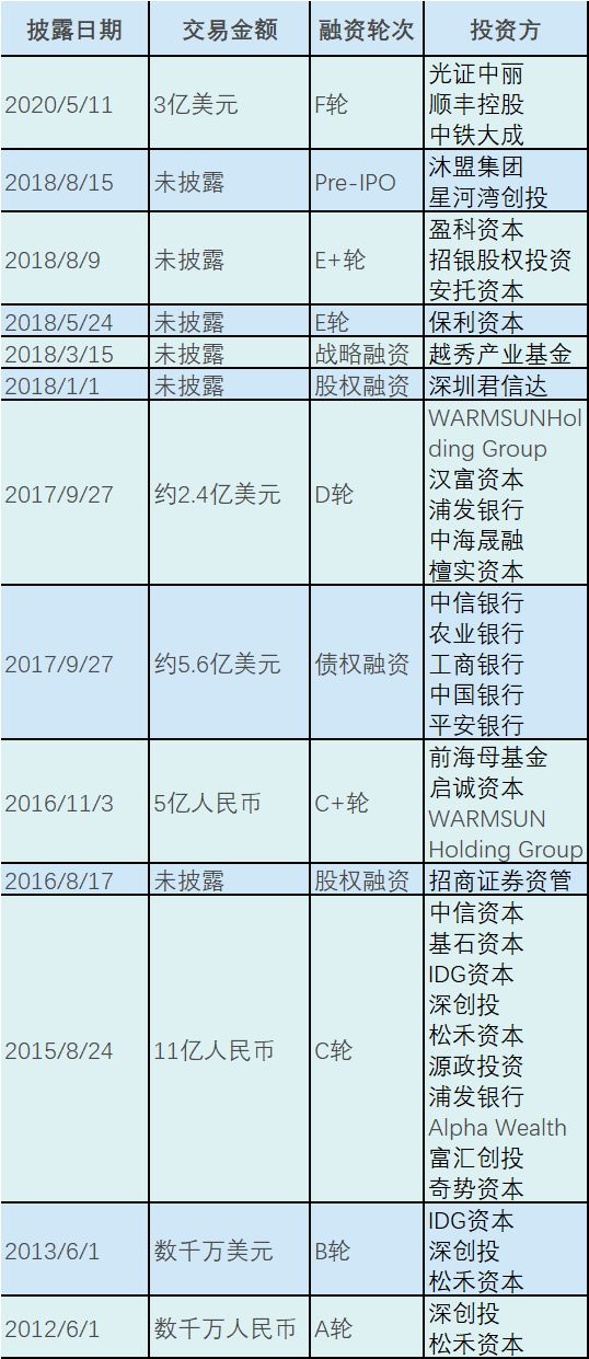 天眼查数据显示,柔宇最近一轮融资发生在2020年5月,F轮,金额为3亿美元。自2012年成立以来,柔宇共计融资13轮,其中不乏知名的企业与投资机构,如顺丰控股、IDG资本、深创投、前海母基金、基石资本、松禾资本、工商银行、中国银行等。