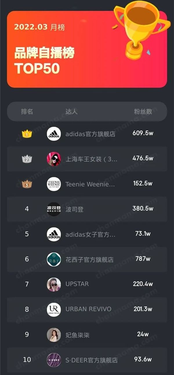 从季度数据看淘宝直播流量集中趋势更明显,月度榜单排名几乎与日榜完全相同,超级头部主播还是牢牢把持了大部分流量,另一部分则由品牌官方自播分走。