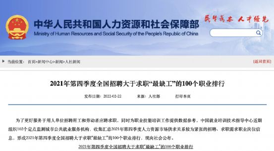 “年轻人不愿去工厂”的问题,早在几年前就存在。近几年,平均每年有近150万人离开制造业。不久前,人社部 公布2021年Q4全国招聘求职“最缺工”100个职业排行,其中58个属于生产制造及相关人员岗位。
