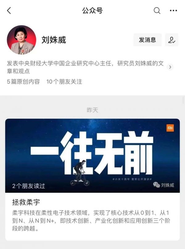 从这个角度来看,柔宇独董刘姝威的呼吁发声,或许早已想好了定点传播对象。