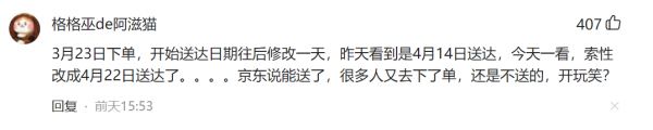 在疫情爆发初期,京东物流配送大范围延迟甚至出现爆仓等现象。在微博等社交平台上,也可以看到大量用户对京东配送延迟的吐槽。