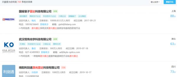在智能汽车需求倒逼下,激光雷达行业也迎来了春天。根据天眼查APP显示,最近5年内新成立的激光雷达相关公司达到769家。
