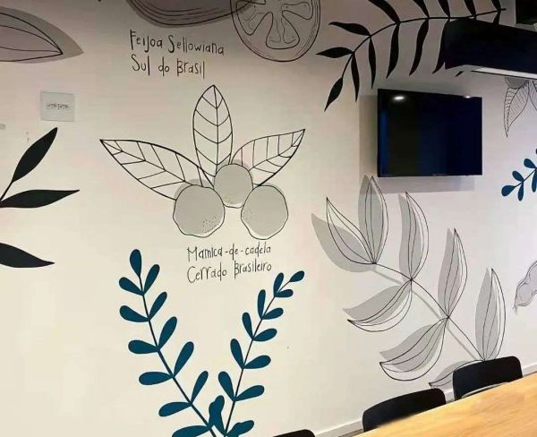 搬家前,我给所有人买了1000块一把的办公椅,在厨房放了咖啡机,还手绘了一面墙,以营造温馨的感觉。只不过这个手绘我只花了颜料钱,最终是由公司的两位设计完成的。