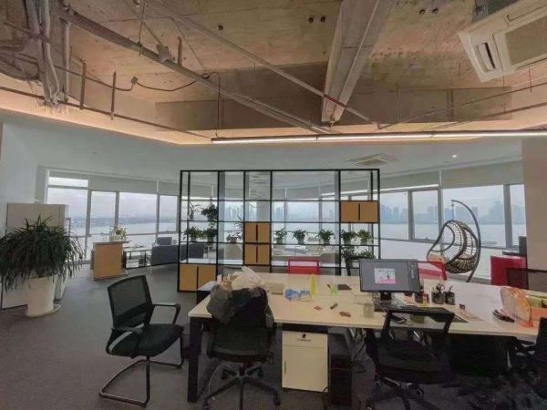 很快,我们就选定了这间视野和位置都不错的办公室,站在公司明亮的落地窗前,可以看到洒满阳光的街道,再往前走两步,就是宽阔的钱塘江。搬家那天,我和部门的同事通宵在新办公室里干活,还拍了短视频记录。