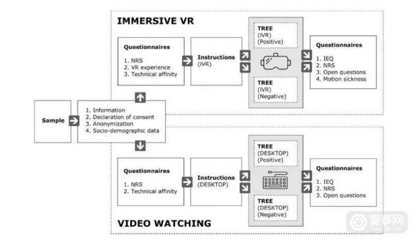 为了验证上述理论,科研人员在28人小组中进行实验,其中14人在VR中进入自然主题的《Nature Treks VR》应用,而另外14人则在显示器上观看2D版。在VR中参与者可以转头查看360°自然景观,还可以用手柄来控制树枝运动。而2D屏幕的实验不支持交互,可查看的视觉范围也有限。实验结果:1)参与者们普遍认为VR实验比2D实验更沉浸;2)参与者感受到的沉浸感越强,对自然产生的联系越大;3)VR实验参与者中有71%表示曾站在树的视角,而2D实验中有42%认为自己曾站在树的视角;