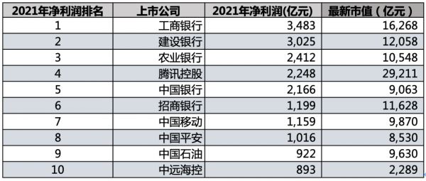 2021年十大最赚钱公司排行榜,一个非常典型的事件是阿里巴巴退出了前十队列。