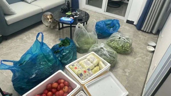 我也就从最开始帮他们买菜,到后来去找渠道、联系朋友去进货。刚好一个住附近的朋友,在做蔬菜配送服务,也有通行证,就帮我去猪场买了半头猪,大概2000元,100多斤。因为我之前学临床医学再加上会做菜,就拿回家自己切肉、分装,我家砧板没这么长,搞得整个家跟屠宰场似的;后来我又进了一次一两百斤的蔬菜,大概是6-8元/斤,也是直接拿去分了。如果分不完,就自己先冻着,等别人有需求了再送过去。