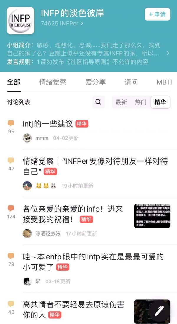 在建构与众不同自我的同时,另一方面,有限度的类型划分也让人始终能找到自己的同类,infp找到infp,entp找到entp,有了群体认同与归属感。