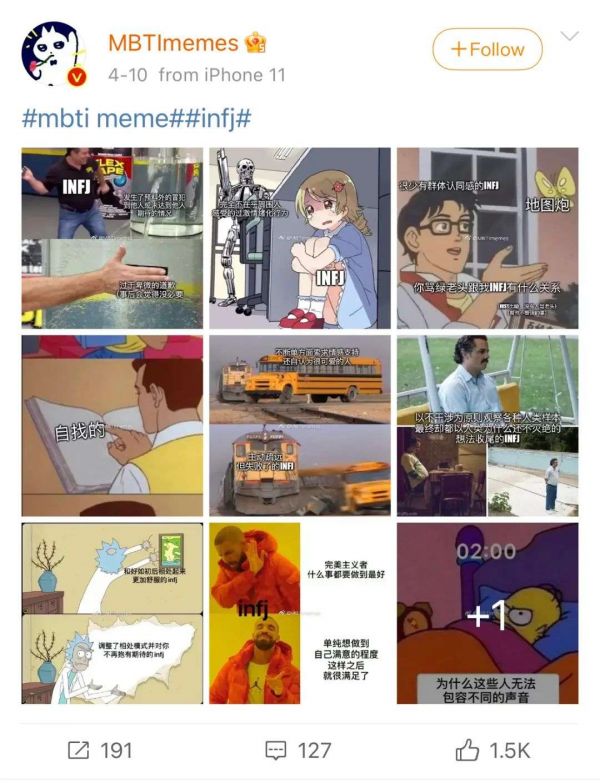 当然了,即便类型不同,作为参与了同一个测试的人,当infp与entp在茫茫网络空间中相遇,他们也能立刻聊起来。测试本身就是通行的社交货币,让人以低门槛、低成本的方式快速加入一个特定话语空间中。