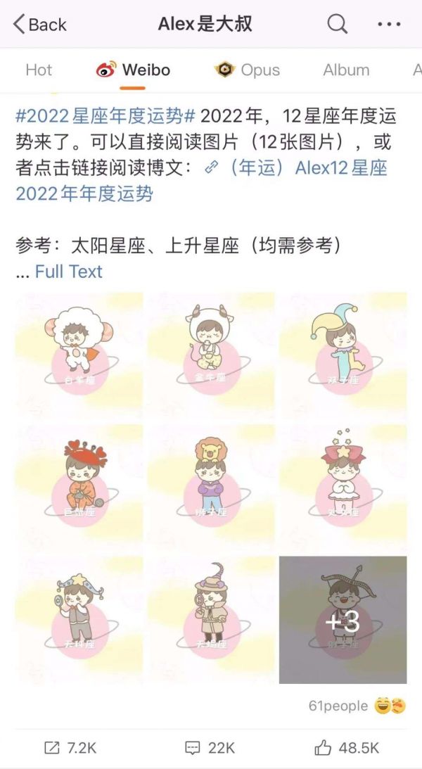 到移动互联网逐渐兴起,最早一批自媒体和软件平台中,星座星盘、生辰八字、塔罗占卜的身影也十分抢眼。“Alex是大叔”“同道大叔”等就是其中典型,他们的星座运势解读,是一些人不可缺的行动指南。