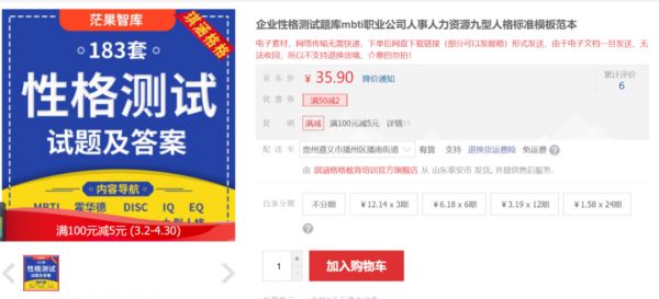 网上售卖的人格测试“范本”。图片来源:京东
