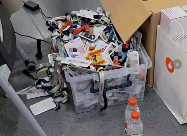 某互联网公司堆积的离职员工吊牌 | 图源:证券时报