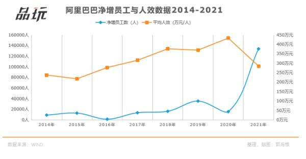 ·阿里巴巴,2018财年(2019年3月1日)员工总数10.19万人;到了2020财年(2021年3月1日)员工总数25.1万人,两年净增14.9万人,其中90%增长自2021年,两年整体增幅高达140%;