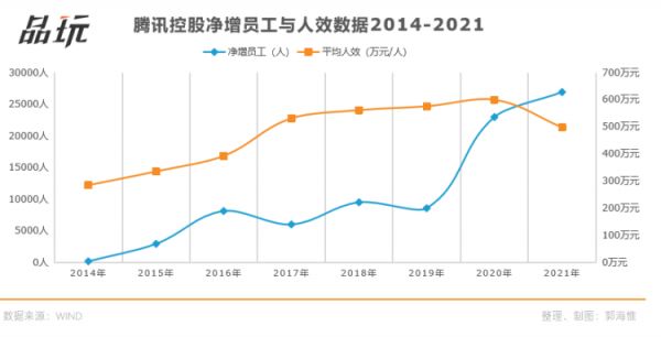 以腾讯为例,2019年12月31日,公司员工总数还只有6.29万人;但到了2021年底,这个数字变成了11.28万人,两年净增近5万人,增幅近80%。