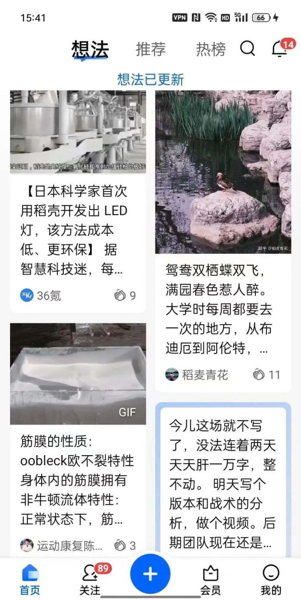 有灰度测试到新版本的用户称,知乎的「想法页」放到「首页」,改成双栏布局,图文视频都可以发布,“可以把APP改名为小蓝书了”。