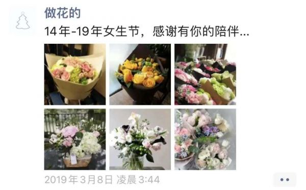 不过,我们从来没有做过私域维护。如果说有,就是通过朋友圈晒“买家秀”,会有客人问,“店里又进了什么花材?”还有客人给自己或者朋友家人订花。