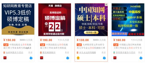 此外,虽然国内学术数据库不止知网,但知网是绝大多数高校的毕业论文专用查重机构,但知网又不对个人开放,导致不少学生只能被迫在电商平台上购买“灰色查重服务”,查重费用从数十元到上百元不等。
