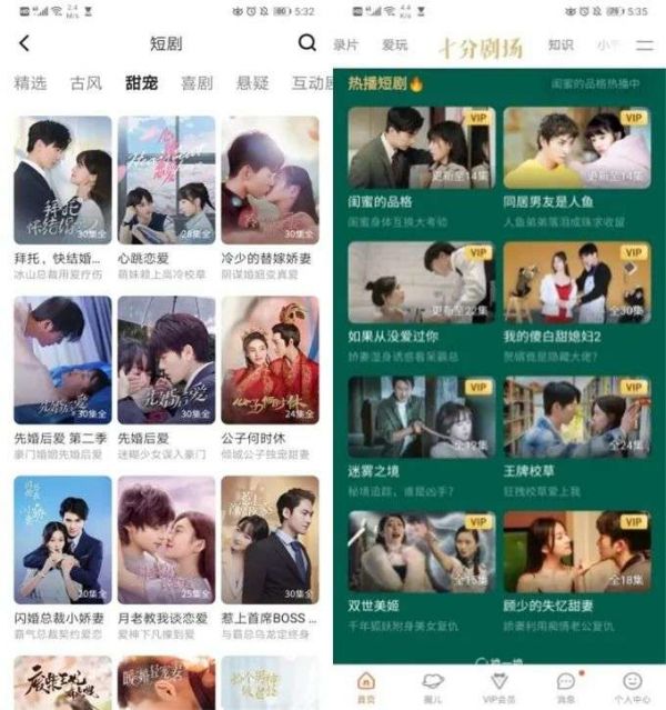 左为优酷短剧类目截图;右为腾讯视频短剧类目截图